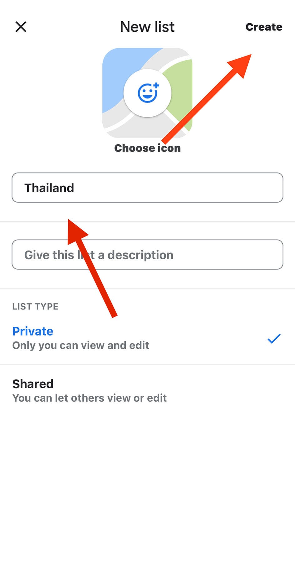 4. Name the List: Give it the name you want, usually the country/city name will be great!
